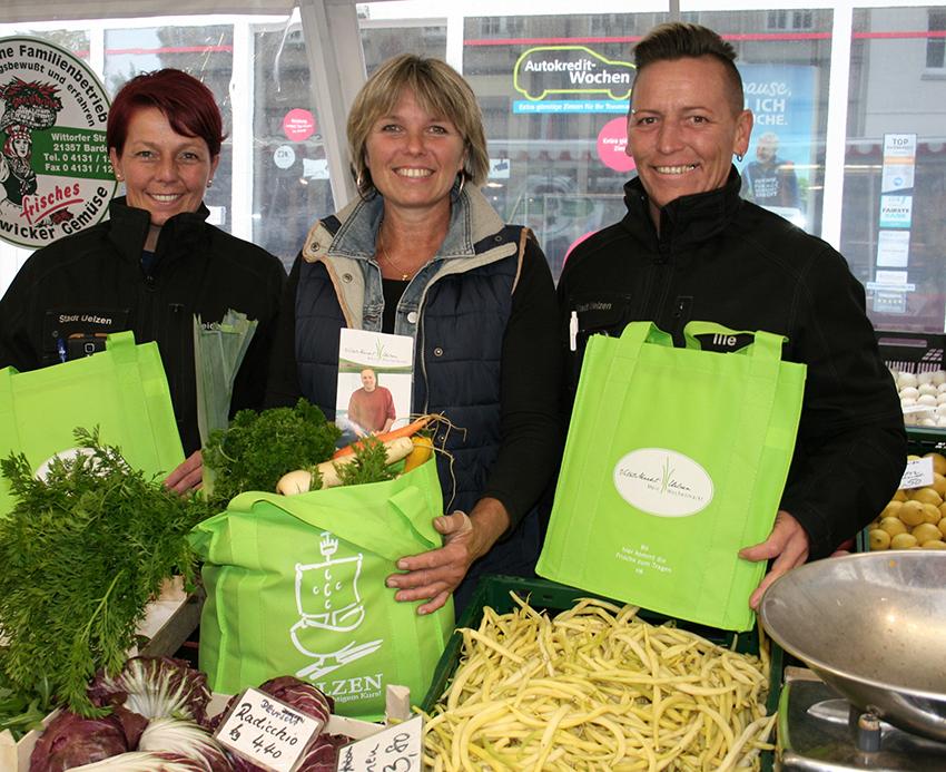 Die „Uelzener Vitalmarkt-Tasche“ hatte im Frühjahr 2012 den bis dahin üblichen Plastikbeutel abgelöst. Marktmeisterin Anjela Ille, Initiatorin des Taschenprojektes, ist noch immer begeistert, dass ihr Vorschlag bei den Marktbeschickern und der Stadt Uelzen von Anbeginn auf große Resonanz stieß und nun eine Neuauflage ermöglicht wurde. Das recyclingfähige Material ist mit bis zu 17 Kilogramm belastbar und leicht zu reinigen. Die Taschen sind nicht nur praktisch und umweltfreundlich, sondern zugleich ein sympathischer Werbeträger für die Stadt und die Region.
