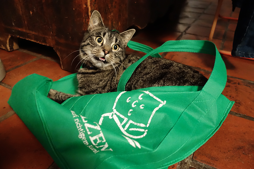 …kommt, wie man sieht, nicht nur bei uns Menschen gut an. Unsere Katze Lucie nämlich liebt die grüne Tasche, die wir vom Uelzener Vitalmarkt mit nach Hause gebracht haben.